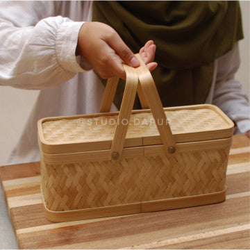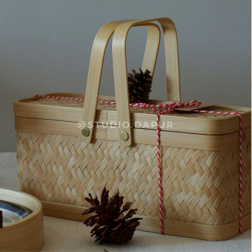 PRODUCT OVERVIEW The Mala Basket is the smaller counterpart to the Alamanda Basket, designed for gifting and organizing smaller items with elegance and practicality. Perfect for presenting small cookie jars, tea sets, ceramics, or amenities, its compact size and exquisite craftsmanship make it an ideal choice for thoughtful gifting or stylish storage. Crafted with woven and laminated bamboo, it exudes natural beauty and durability.