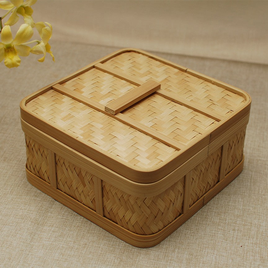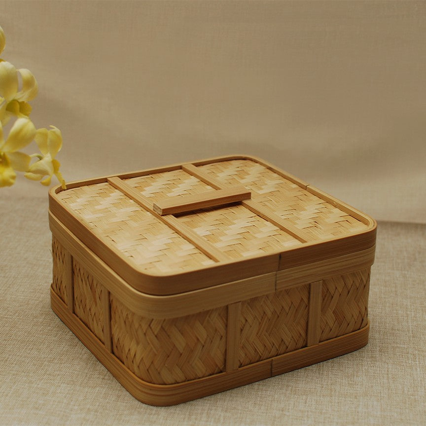 The Square Hampers combine traditional craftsmanship with modern practicality, offering a sustainable and elegant way to store or gift small treasures and delicious treats.
