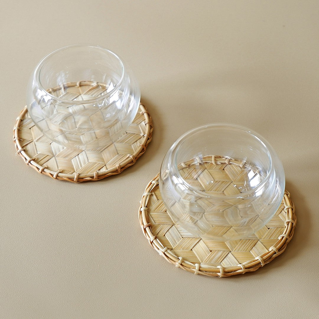 PRODUCT OVERVIEW The Woven Coaster is a timeless and practical accessory for your home. Meticulously handcrafted using traditional bamboo weaving techniques, it protects your surfaces while adding a touch of natural elegance. Lightweight and durable, these coasters are perfect for daily use and special occasions, making them a versatile addition to your dining table or coffee table.