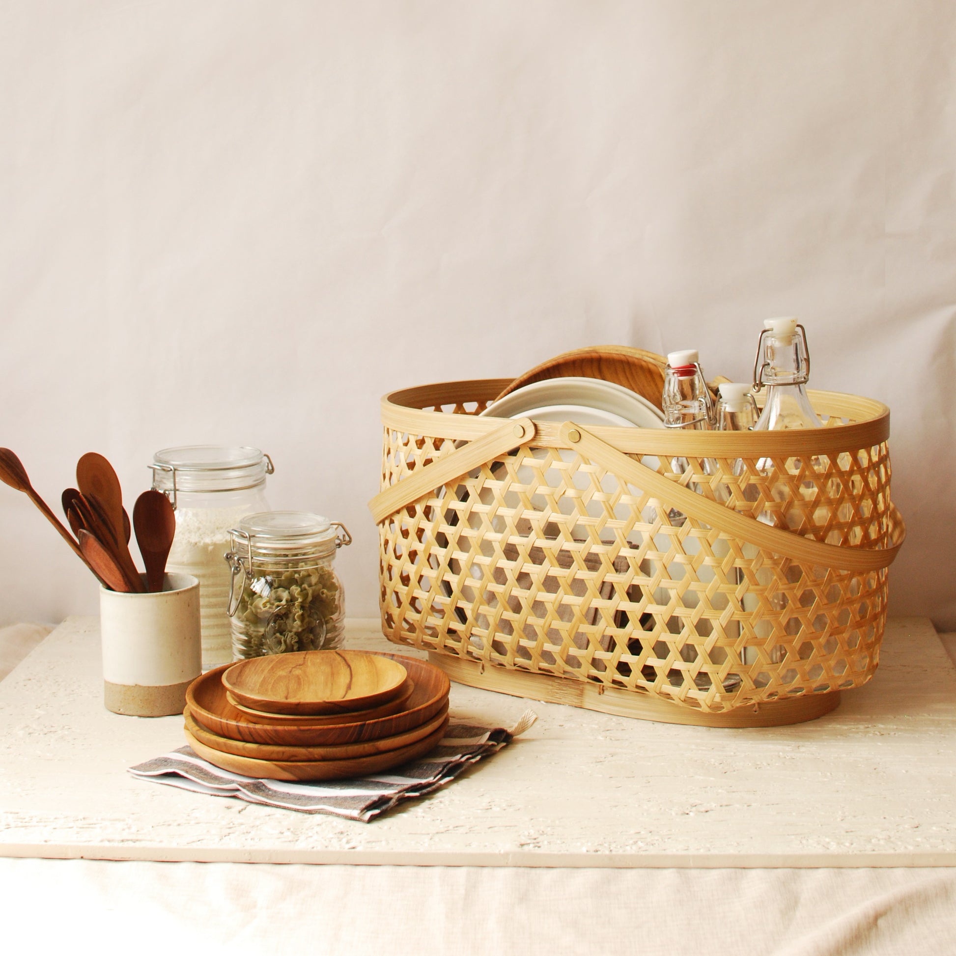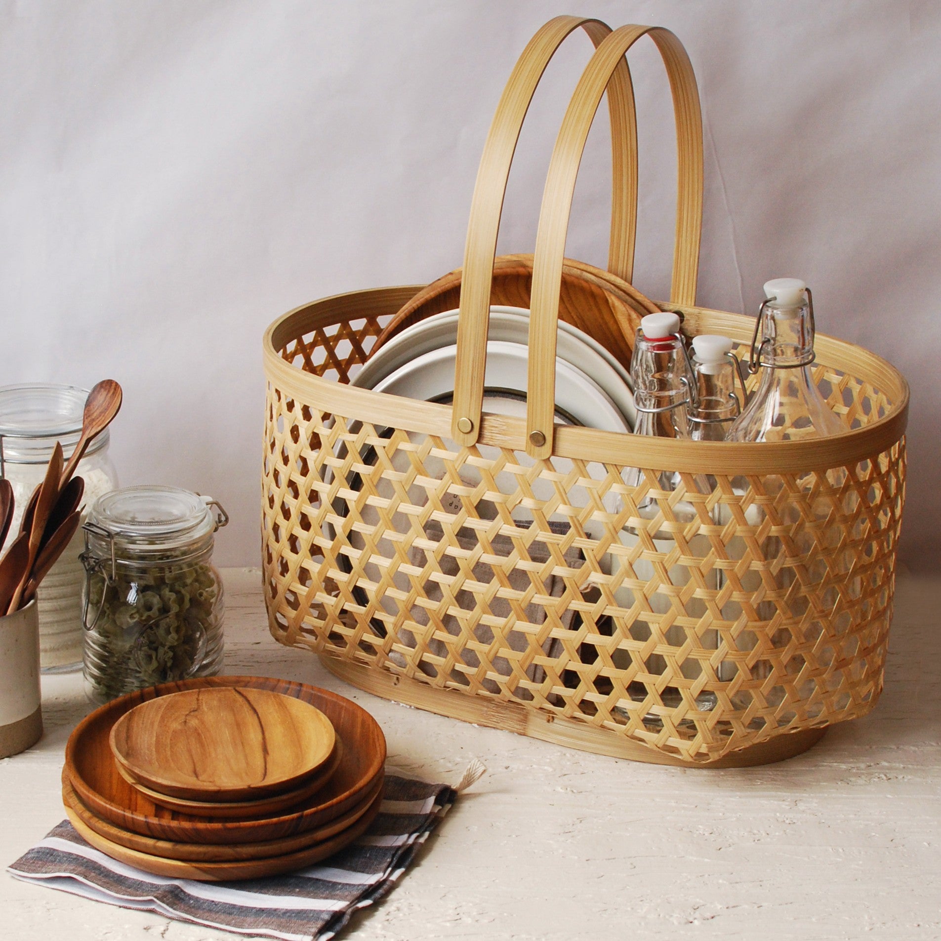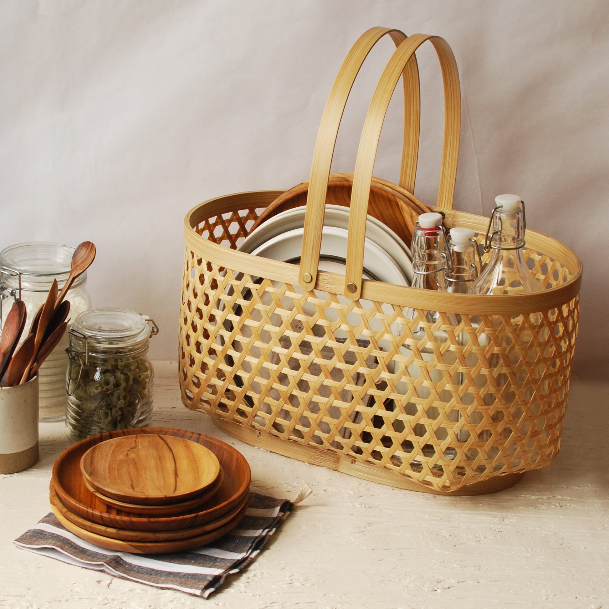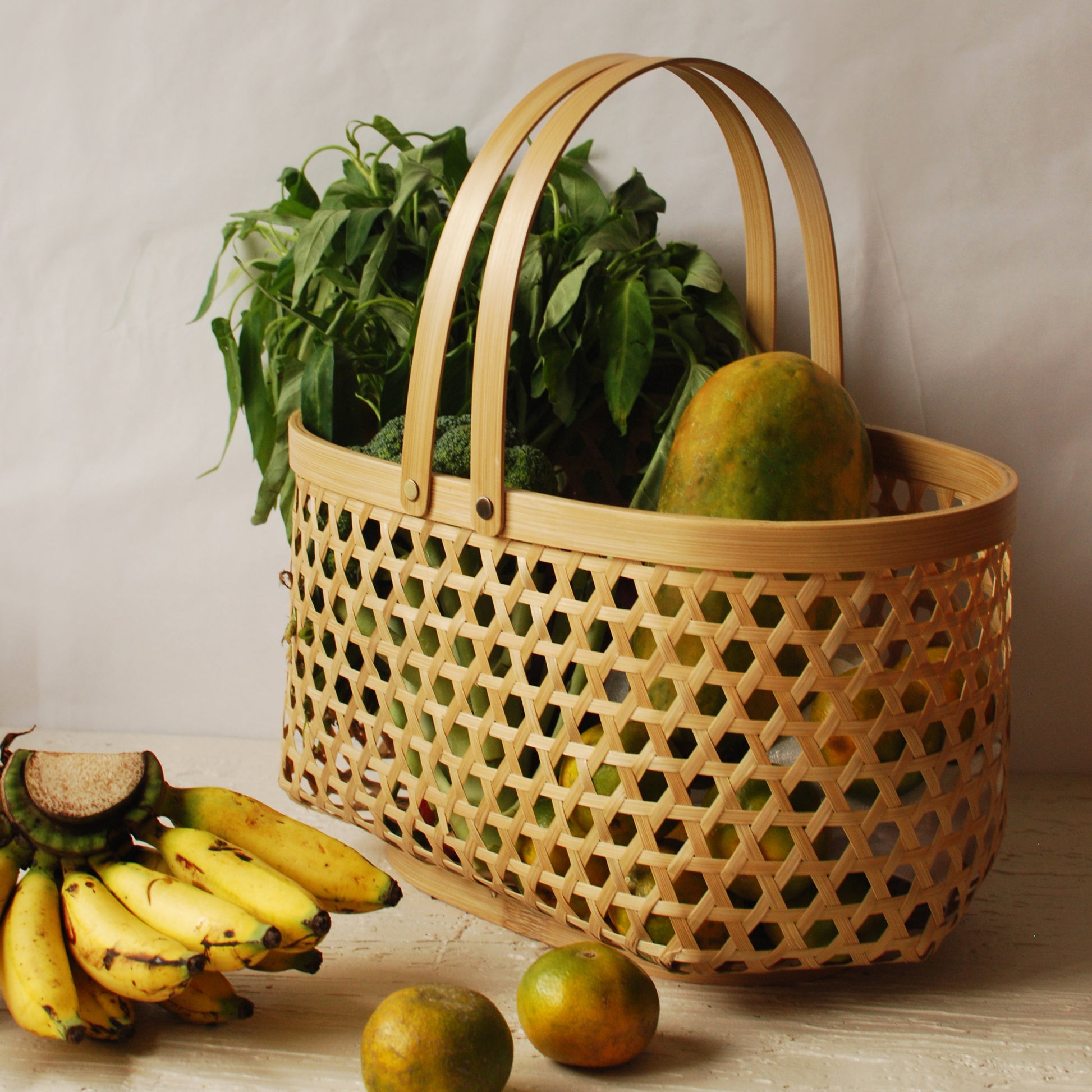 PRODUCT OVERVIEW The Yasa Basket is a neutral, versatile, and elegant addition to your home. Whether used in the kitchen, for harvesting from your home garden, or as a stylish shopping bag, it seamlessly combines beauty and practicality. Available in both round and oval shapes, the Yasa Basket is crafted with traditional bamboo weaving and comes in three sizes to suit your needs. Perfect for organizing household items, storing fruits, presenting gifts, or elevating your everyday activities.