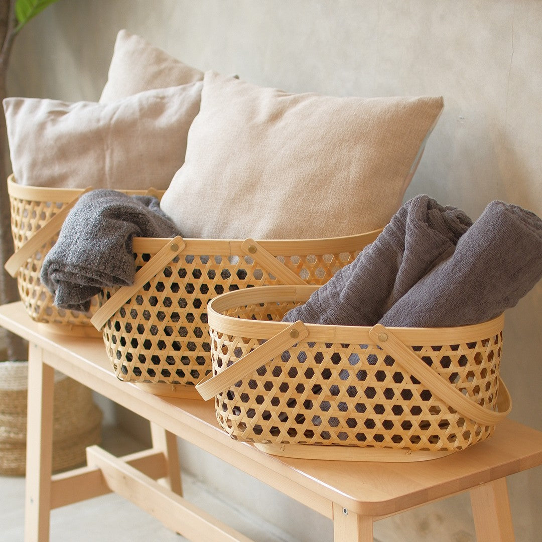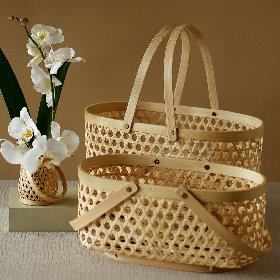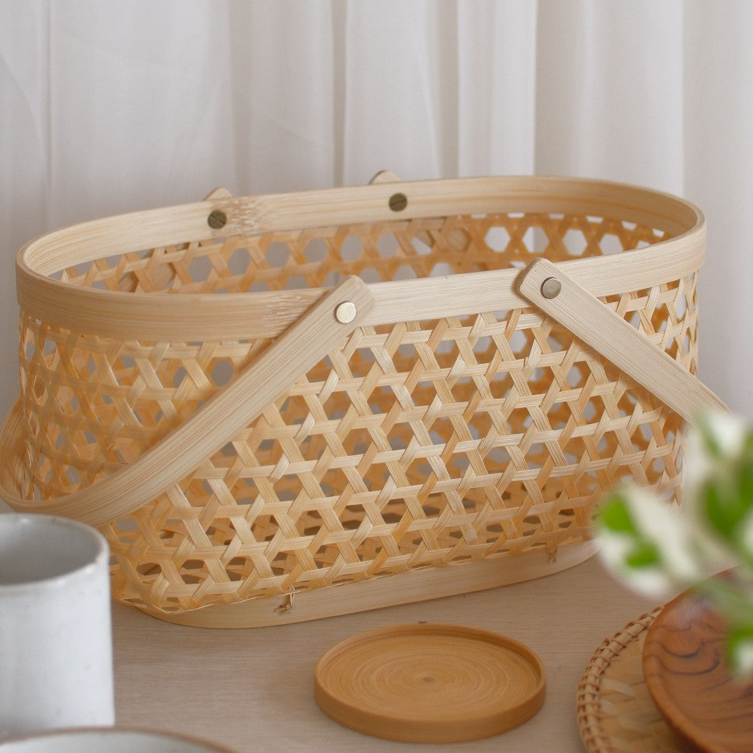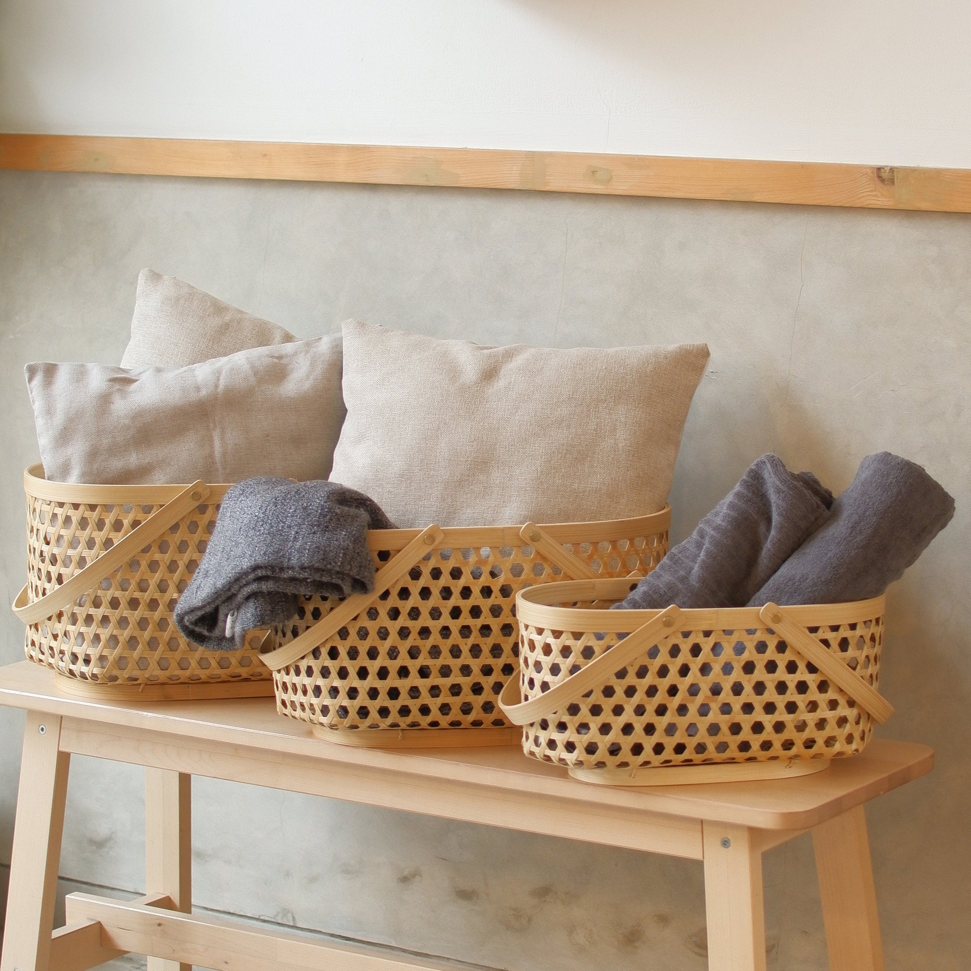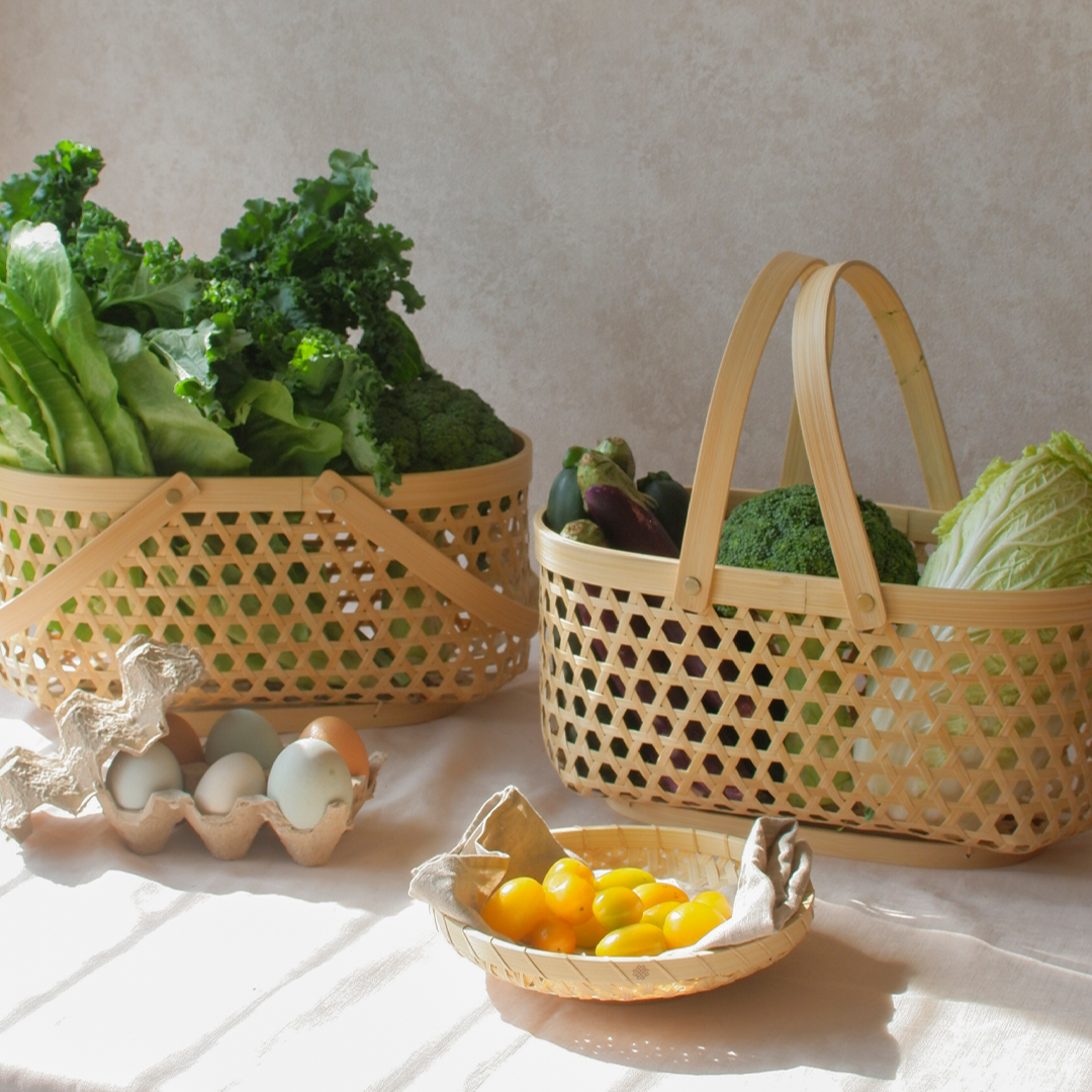 PRODUCT OVERVIEW The Yasa Basket is a neutral, versatile, and elegant addition to your home. Whether used in the kitchen, for harvesting from your home garden, or as a stylish shopping bag, it seamlessly combines beauty and practicality. Available in both round and oval shapes, the Yasa Basket is crafted with traditional bamboo weaving and comes in three sizes to suit your needs. Perfect for organizing household items, storing fruits, presenting gifts, or elevating your everyday activities.